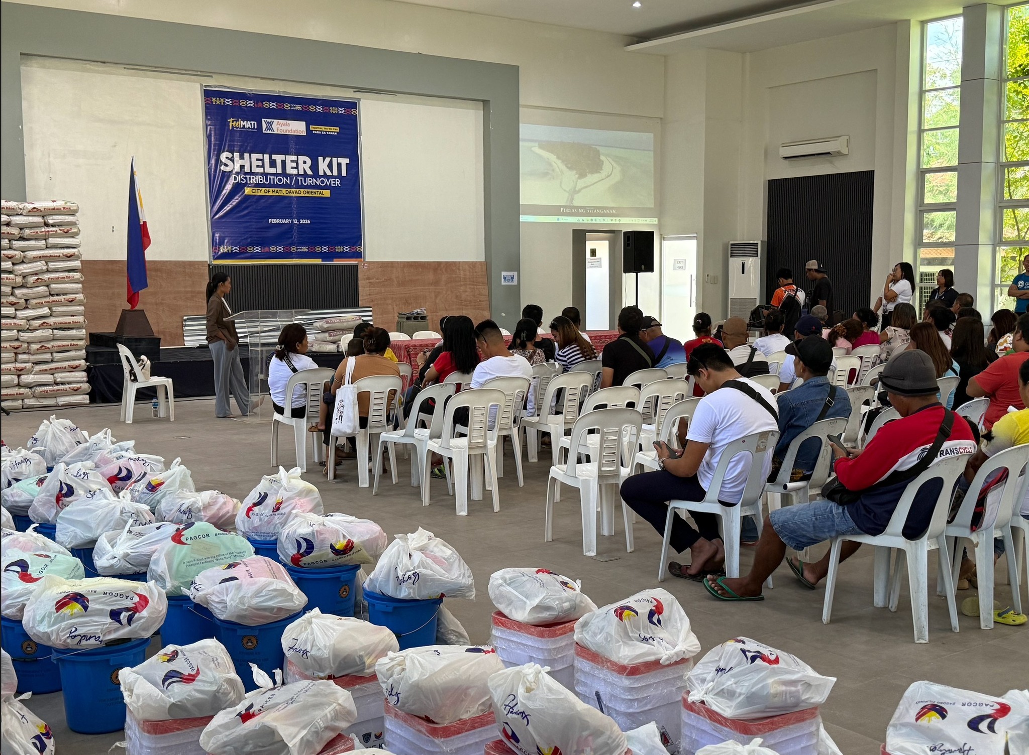 In Mati City, Ayala Foundation distributed 80 shelter kits to families affected by recent earthquake, typhoon, and fire incidents.